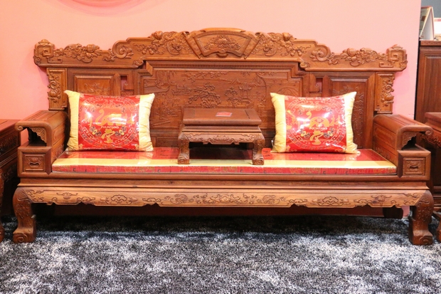 關(guān)于該系列沙發(fā)的具體詳情細(xì)節(jié),考慮到其雕琢繁冗圖案眾多的緣故,我們就著重從其紋飾入手,通過解析其寓意、并從外觀結(jié)構(gòu)上依次進(jìn)行介紹、另外針對產(chǎn)品的制作工藝、實用性等特點進(jìn)行補充描述。
